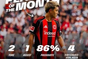 8月份堂安律共为法兰克福出战3场正式比赛,打入4球助攻1次,法兰克福官方表示凭借在德甲第2轮球队3-1击败霍芬海姆的比赛2射1传的表现,堂安律当选8月最佳。