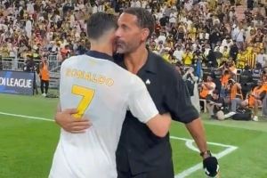 C罗的前曼联队友费迪南德也来到现场观战,并和C罗拥抱寒暄。