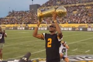 体育资讯8月8日讯 雷霆队球星亚历山大携总冠军奖杯回到了家乡加拿大安大略省汉密尔顿市,在该市体育场内他接受了广大球迷的欢呼。